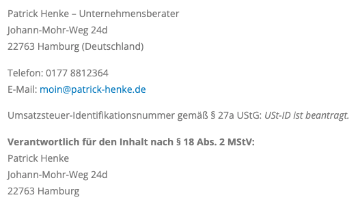 Zur Ausübung dieser Rechte genügt eine formlose Mitteilung an: moin@patrick-henke.de